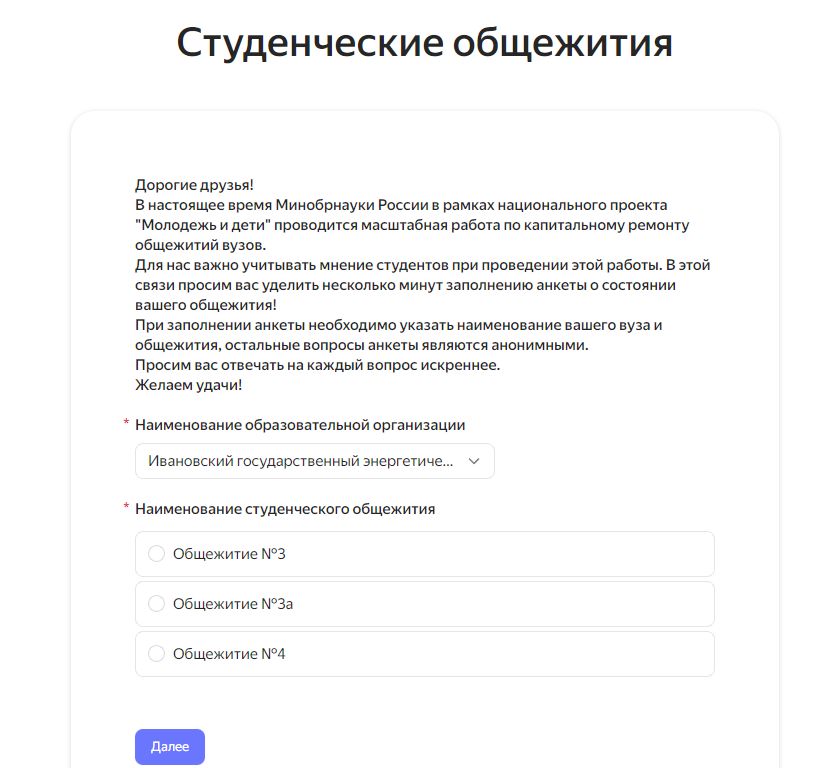 Для отчета по статистике участия в анкетировании просим прислать скриншот на электронную почту studsity@ispu.ru директору студгородка с пометкой: номер общежития и номер комнаты.