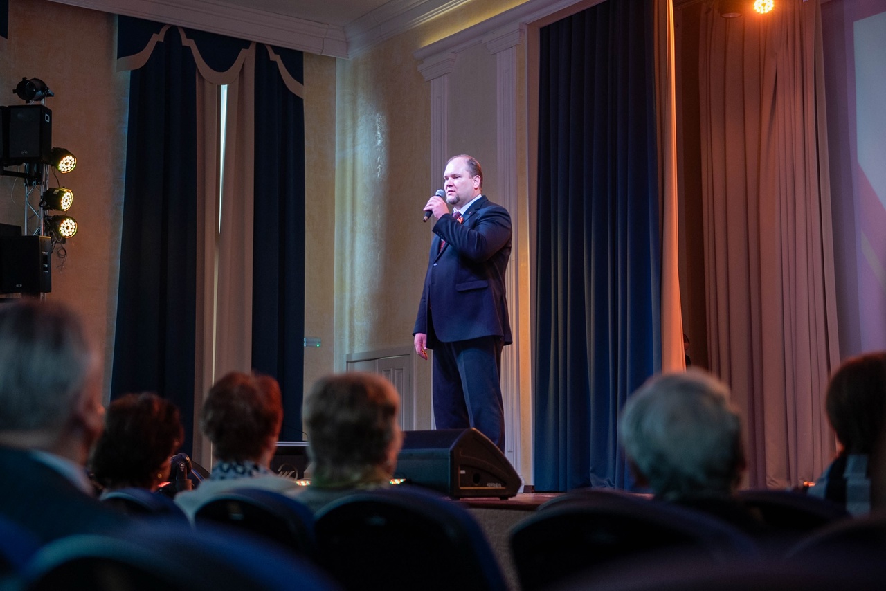 Заместитель начальника Военного учебного центра ИГЭУ Эдуард Викторович Ерпулёв говорил о преемственности поколений - прошедших военную подготовку студентах ИЭИ – участниках Великой Отечественной войны, а также о современных выпускниках Военного учебного центра ИГЭУ – участниках Специальной военной операции.