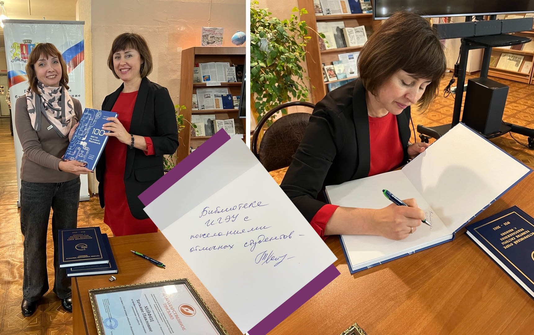 Книгу «100 фактов из жизни Водоканала» наша Библиотека получила в дар, а ее автор – Т.П. Хейфец – оставила в ней свой автограф. Для знакомства с этим изданием приходите в Читальный зал (А-330).