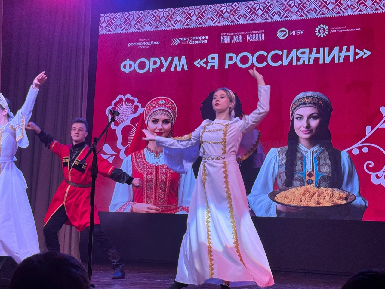 Со сцены участников форума поприветствовали председатель комитета по молодежной политике Администрации города Иванова Дмитрий Мокеев, председатель комитета по культуре Администрации города Иванова Александр Антонюк, и.о. директора БУ «Ивановского дома национальностей» - депутат Ивановской городской Думы Борис Мурванидзе. Они отметили важность культурного наследия, воспитания уважения к традициям и развития межкультурного диалога.