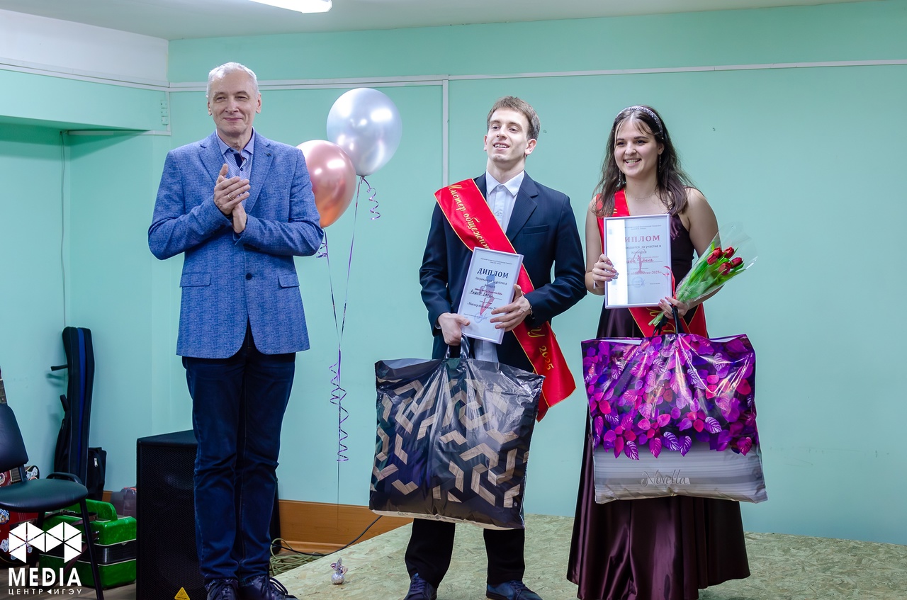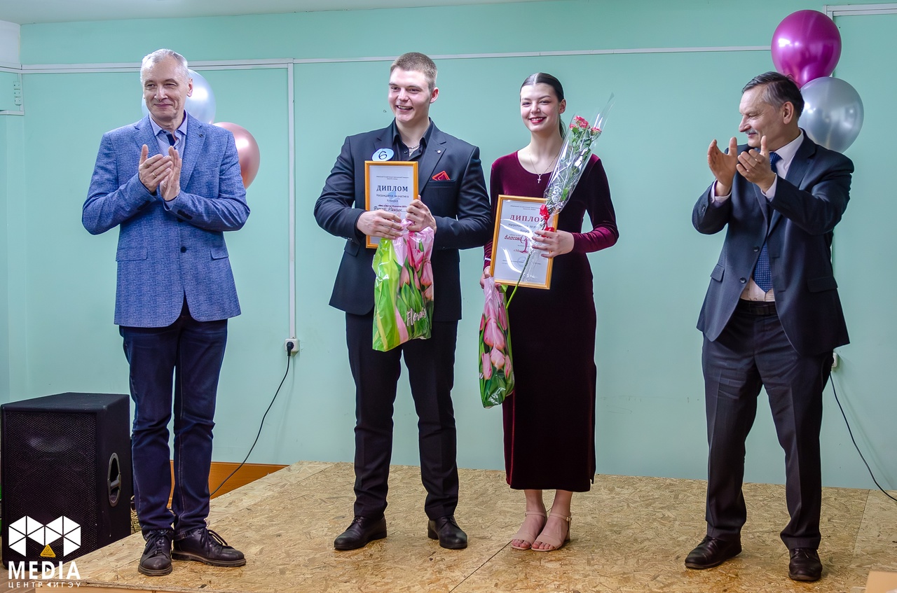 admin 21 March 2025 Победителями конкурса, получившими звание «Мисс и Мистер Общежитие-2025», стали Рыжов Захар (гр.1-ТЭ-1) и Монахова Анна (гр.2-13) из общежития №4. 255 просмотров Ссылка на источник MEDIAцентр ИГЭУ | Студенческое СМИ Теги Галерея Фотоотчёт
