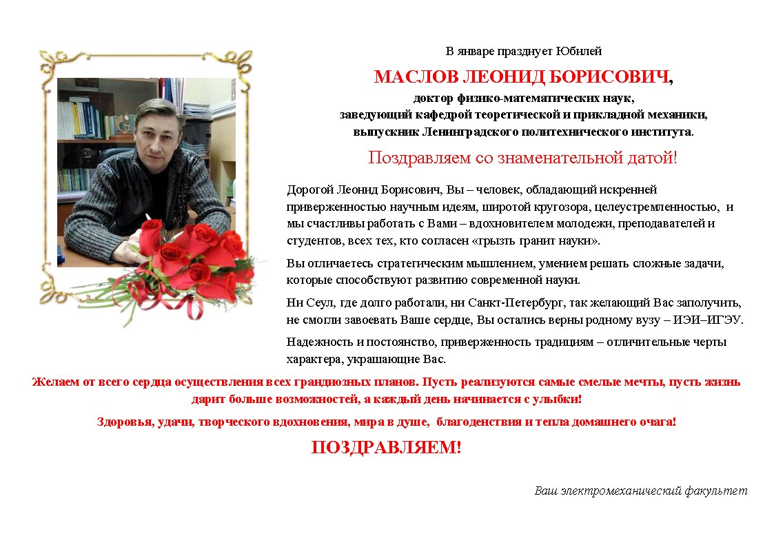 В январе празднует Юбилей доктор физико-математических наук, заведующий кафедрой теоретической и прикладной механики Леонид Борисович Маслов.
