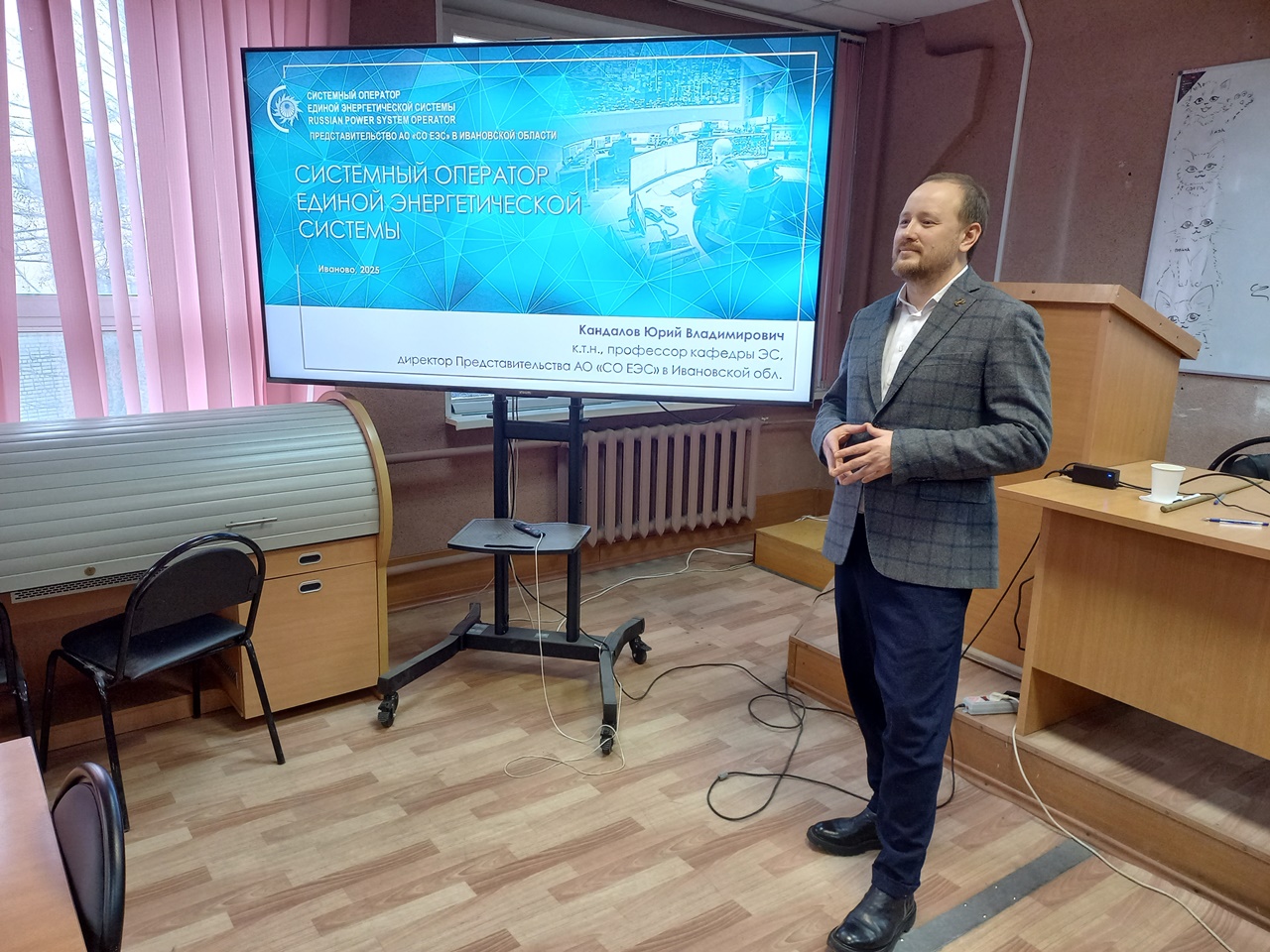 25 марта 2025 г. Директор представительства АО «СО ЕЭС» в Ивановской области Юрий Кандалов провел встречу со студентами 4 курса бакалавриата ИГЭУ, на которой поговорил с будущими молодыми специалистами о важных аспектах успешной работы в отрасли.