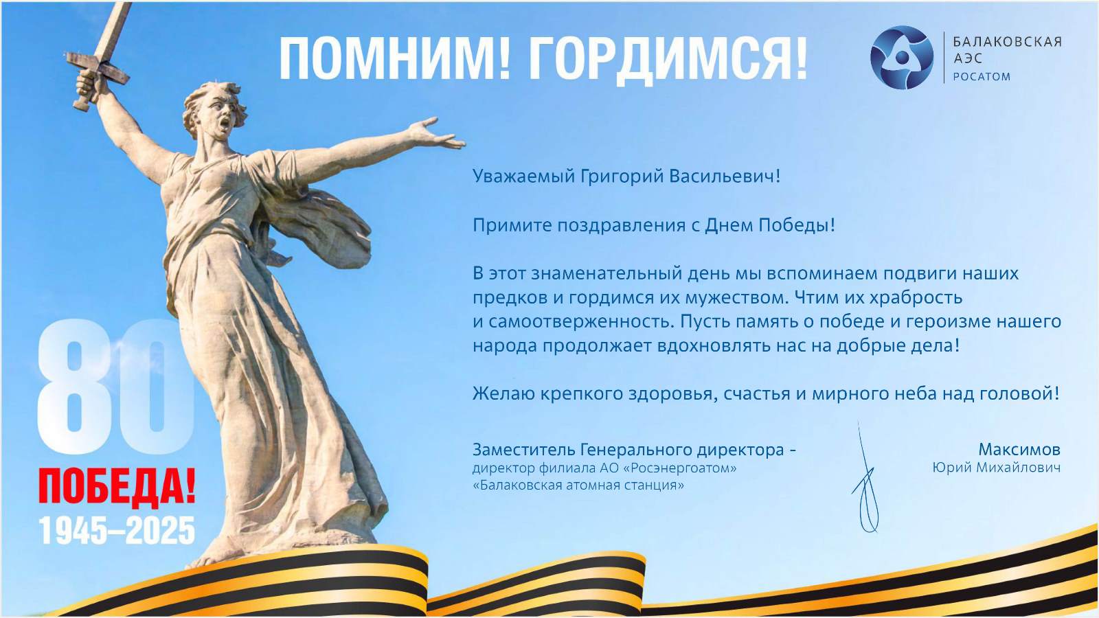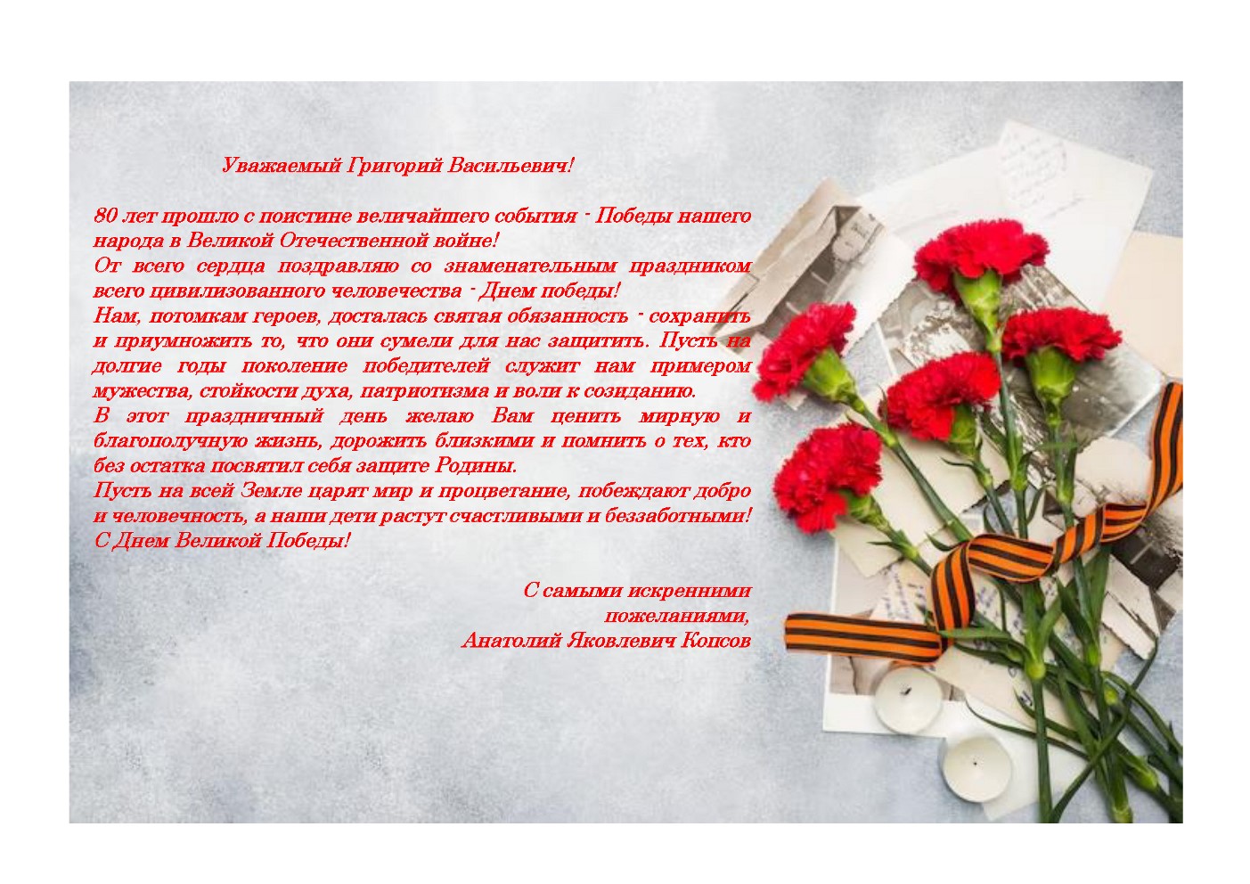 Сегодня мы отмечаем знаменательную дату – 80-летие Победы в Великой Отечественной войне. Это событие навсегда останется в наших сердцах символом мужества, героизма и непобедимого духа нашего народа.