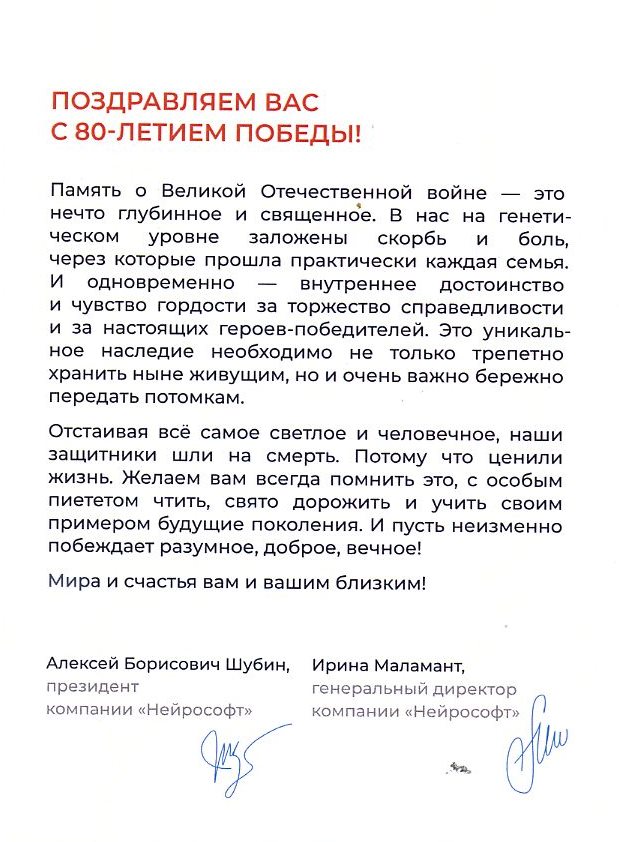 Мы склоняемся перед подвигом ветеранов, перед тем бесценным вкладом, который они внесли в историю нашей Родины. Их стойкость и самоотверженность спасли миллионы жизней и обеспечили свободу для будущих поколений.