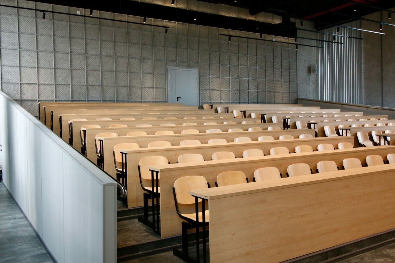 Новое пространство объединяет поточную лекционную аудиторию и многофункциональный зал, включающий компьютерные центры, секторы для проектной работы и зону свободного общения. Кластер выполнен в едином корпоративном стиле ПАО "Т Плюс", оборудован современными мультимедийными комплексами и позволяет проводить самые разные мероприятия: лекции, практические занятия, конференции, тренинги, культурные мероприятия и др.